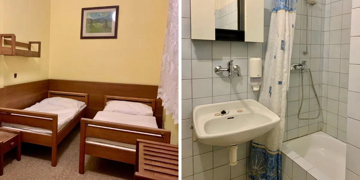 Ale pokoj byl čistý a teplý, povlečení i ručníky voňavé. V koupelně hodně trvalo opravdu dlouho než začala téci teplá voda, ale nakonec jsme se vždy dočkali. Není to ubytování pro náročné, ale všechny nedostatky nám kompenzovala opravdu perfektní poloha hotelu (pár kroků na sjezdovku i na náměstí) a dokonalé výhledy do okolí.