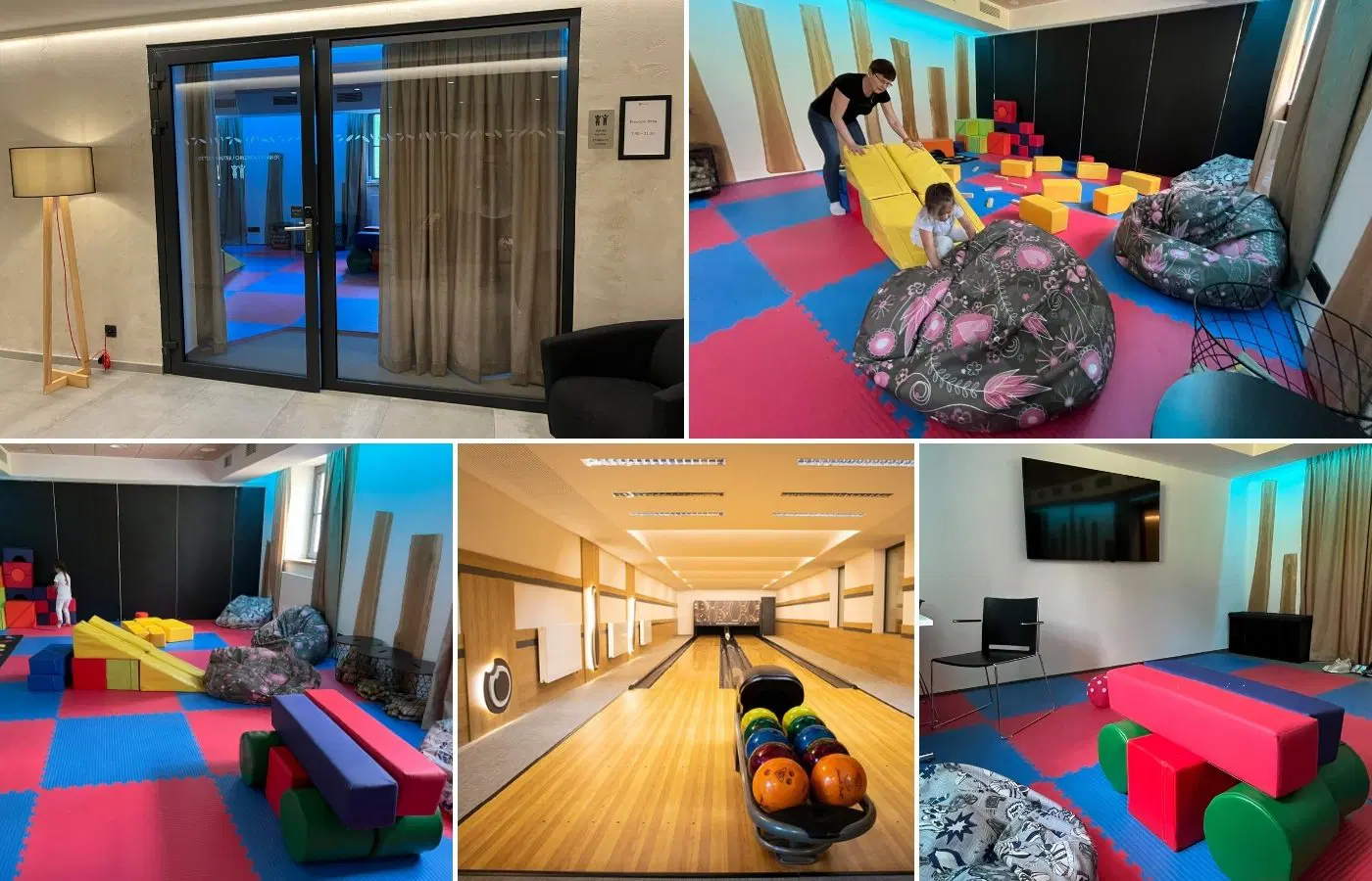 Spoustu času jsme strávili v dětské herně, která je hned naproti recepci. Z velkých pěnových kostek jsme postavili autobus i opičí dráhu, u stolu si malovali a plnili úkoly v dětských časopisech, některé děti si pustily i televizi. Se staršími potomky si určitě zajděte na bowling, v hotelu mají dvě dráhy. Jen si nezapomeňte rezervovat svůj čas.
