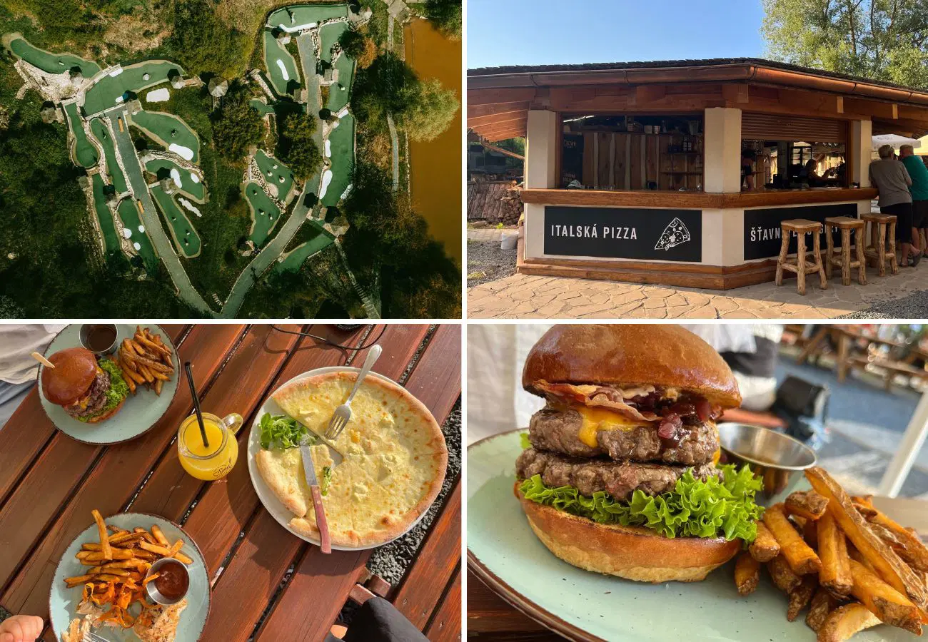 Se staršími dětmi si můžete u bistra zahrát putting golf. Hrát budete s běžnou golfovou holí a míčkem na minigolfových drahách z kvalitní umělé trávy a překonávat přírodní překážky. Pak se rozhodně stavte na jídlo do bistra. Bylo totiž dokonalé. Od burgeru, přes steak až po pizzu. Vše na jedničku.