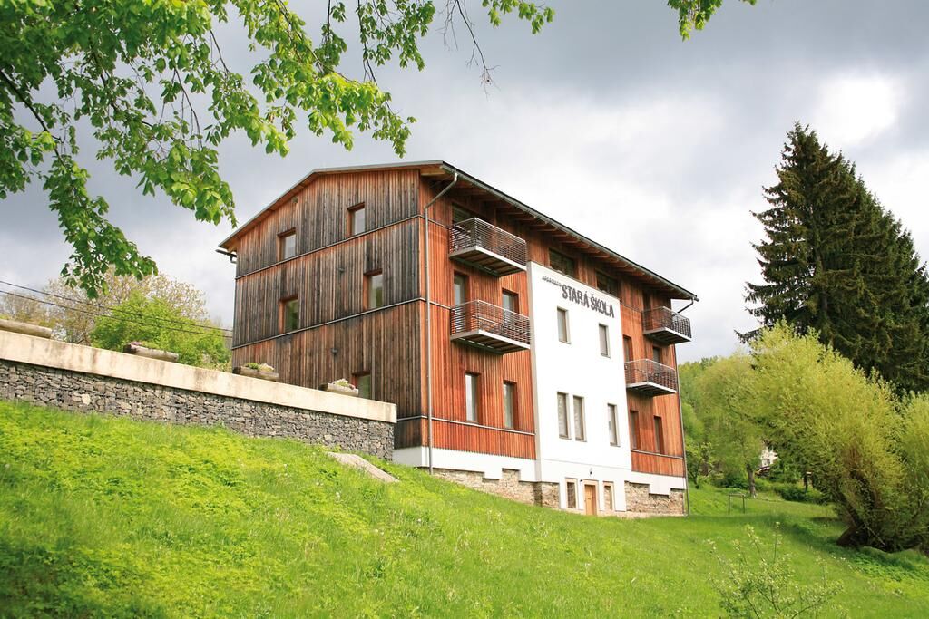 Moderní apartmánový dům Stará škola se nachází uprostřed poklidné krajiny Jizerských hor. Ubytovat se můžete v dvoulůžkovém pokoji nebo v jednom z plně vybavených apartmánů s vlastní kuchyní. Pro miminko vám připraví postýlku, vaničku i židličku. A v zahradě se malí hosté mohou těšit na dětské hřiště.