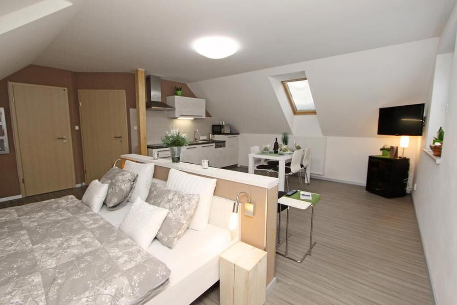 Apartmány Český Ráj najdete v Lomnici nad Popelkou. Součástí každého apartmánu je kuchyňský kout, jídelní kout, vlastní prostorné sociálním zázemí s WC, sprchovým koutem a fénem, trezor, TV, WIFI, dobře vybavený minibar, protialergickými matracemi vyššího standardu.