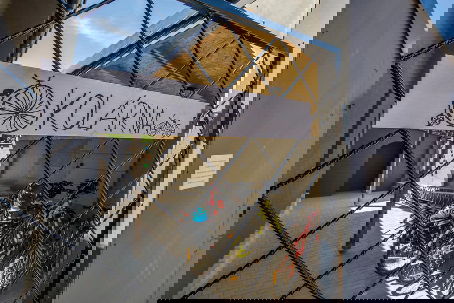 O vaše kola bude postaráno v uzamykatelné kolárně se stojany a kompresorem. Připravené jsou i elektrické zásuvky pro dobíjení elektrokol. Kousek to budete mít na Labskou cyklostezku.