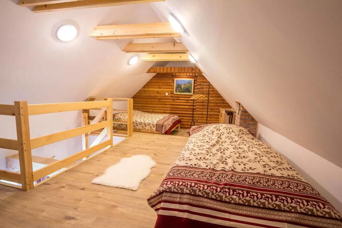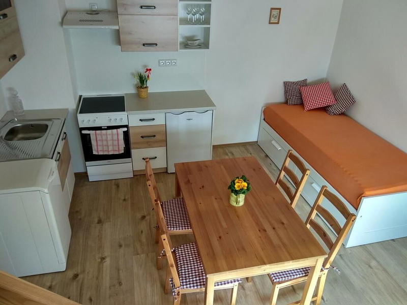 Chaloupka se nachází na okrajové části města Mnichovo Hradiště, které je často označováno bránou do Českého ráje. Ubytování je rozděleno na dva samostatné mezonetové apartmány s vlastními vchody, kuchyněmi, koupelnami a ložnicemi. Možno pronajmout každý zvlášť a nebo za výhodnou cenu jako celek. Pro děti možnost postýlky.