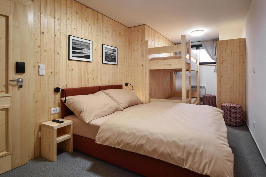 Chata Jeřabinka v Krkonoších nabízí ubytování v těsné blízkosti sjezdovek a v bezprostřední blízkosti chaty Hradečanka, kde je ubytovaným hostům k dispozici restaurace. Rodiny s dětmi se mohou těšit na vnitřní dětskou hernu, jejíž součástí je i společná kuchyňka pro přípravu drobných pokrmů a svačinek i ohřev příkrmů pro nejmenší návštěvníky ubytování.
