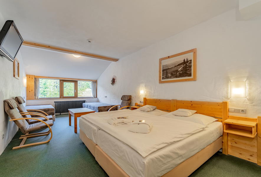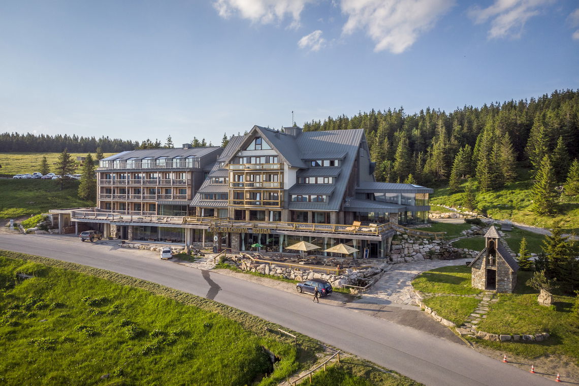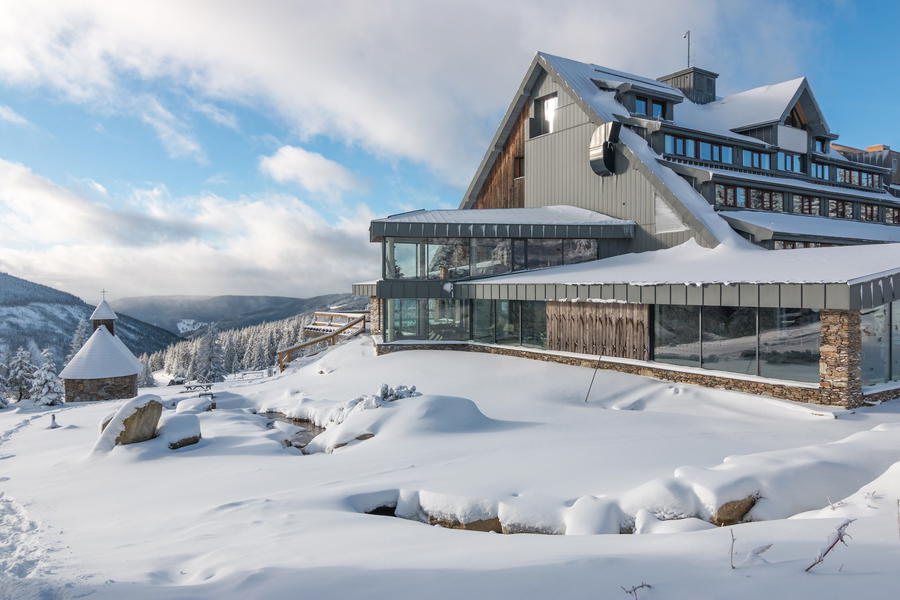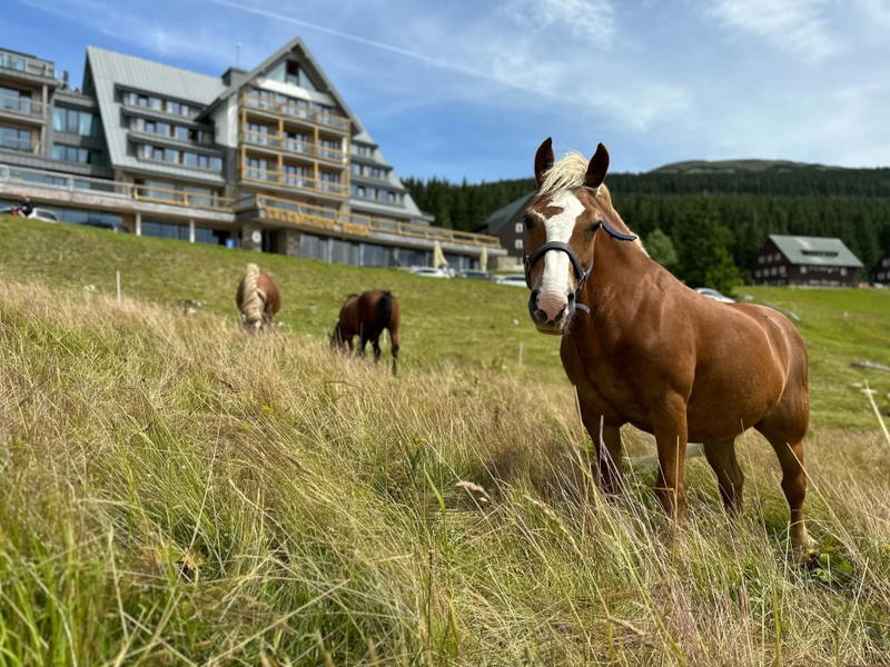 Ubytujte se na hřebenech Krkonoš přímo uprostřed národního parku. Resort sv. František vám poskytne perfektní zázemí, myslí tu totiž na všechny. Maminky mohou zajít na masáž, zatímco tatínkové venku dovádí s dětmi na koních nebo lyžují na malém kopečku pro nejmenší.