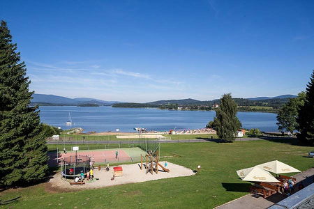 Hotel Racek najdete přímo u břehu Lipna v obci Černá v Pošumaví. Nabízí ubytování za výhodnou cenu na bezvadném místě pro rekreaci. Hotel má restauraci s terasou a dětským koutkem, dětské i sportovní hřiště, malé wellness a fitness centrum, vlastní písčitou pláž a půjčovnu sportovních potřeb.