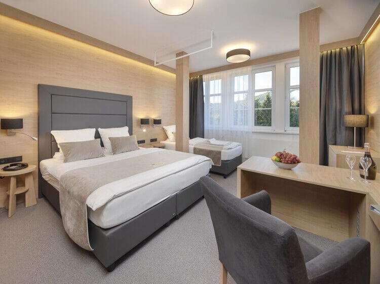 Užijte si skvělou rodinnou dovolenou s dětmi v Krkonoších. Ubytováni budete v hotelu Sněžka ve Špinlderově Mlýně kousek od těch nejkrásnějších sjezdovek. Rodiny s dětmi si hotel zamilují zejména díky jeho vybavenosti a připravenosti i na nejmenší návštěvníky. Starší děti si užijí spoustu zábavy na venkovním dětském hřišti nebo v jednom z vnitřních dětských koutků se spoustou hraček.