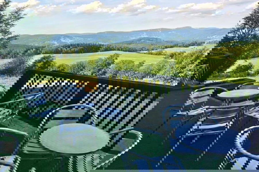 Jen 300 metrů od skiareálu Šachty stojí rozlehlá Kramářova vila ve stylu zámku, kterou bez nadsázky kráčely dějiny 20. století. A právě tady se můžete ubytovat. Pokud dokážete přivřít oči nad nedostatky, určitě si dovolenou v tomto hotelu s nádherným výhledem do okolí perfektně užijete.
