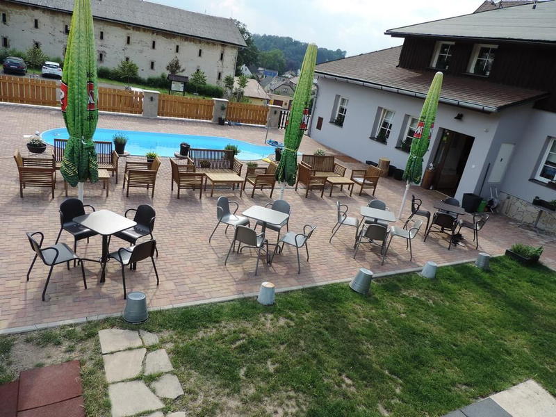 Na zahradě najdete velký bazén a dětské hřiště se skluzavkou, domečkem a houpačkou. Součástí penzionu je kavárna s venkovní terasou.
