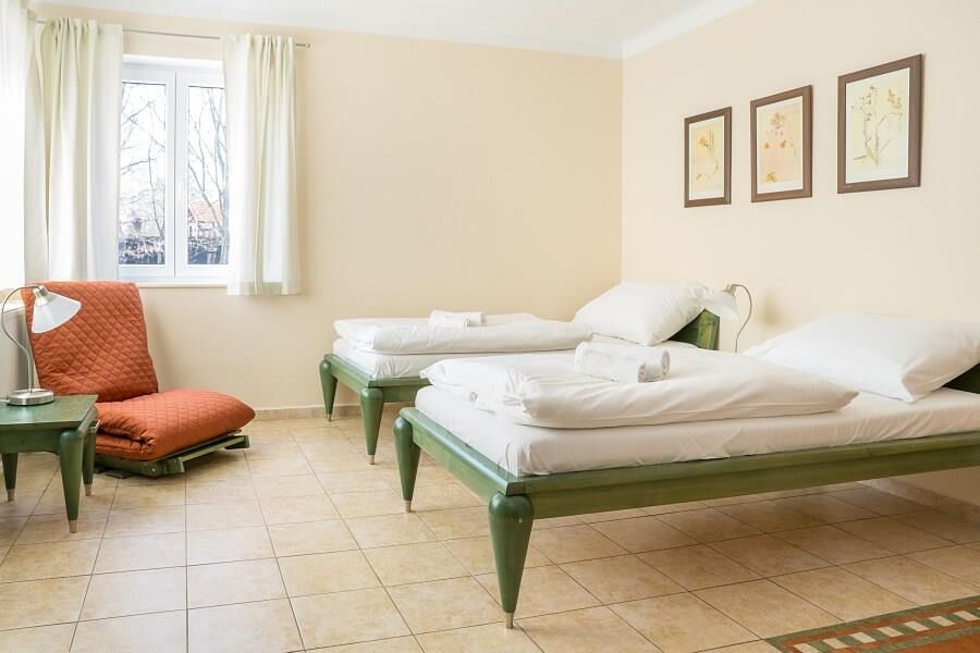 Penzion Dvorce se nachází v Třeboni a nabízí ubytování ideální pro trávení rodinné dovolené. V místě ubytování se nachází krásné dětské hřiště s věží, pískovištěm, dětskou prolézačkou s houpačkou pro větší děti, dvěma skluzavkami a houpačkami. Uvnitř penzionu se nachází vybavený dětský koutek pro případ špatného počasí.
