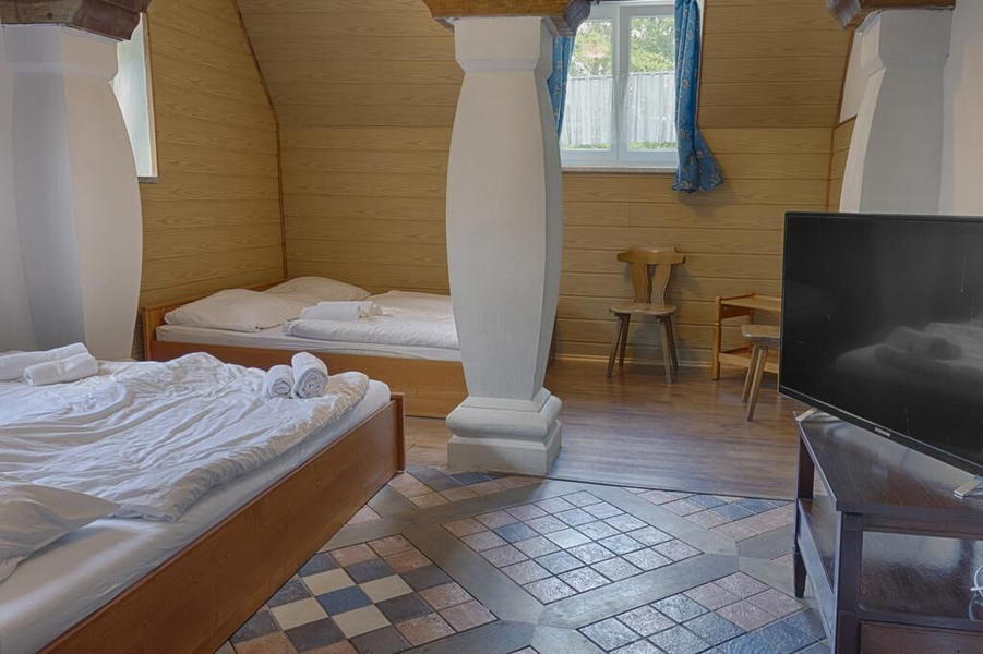 Penzion Gaudeamus najdete v městečku u Sněžné. Ubytování je v pokojích a v Bungalovech. Vybavení- TV, postel , výhled do zahrady a koupelnu se sprchou, možnost přistýlky na pokoji. Bungalovy jsou nově zrekonstruované a disponují nadstandardním vybavením s vlastním sociálním zařízením v každém z nich.
