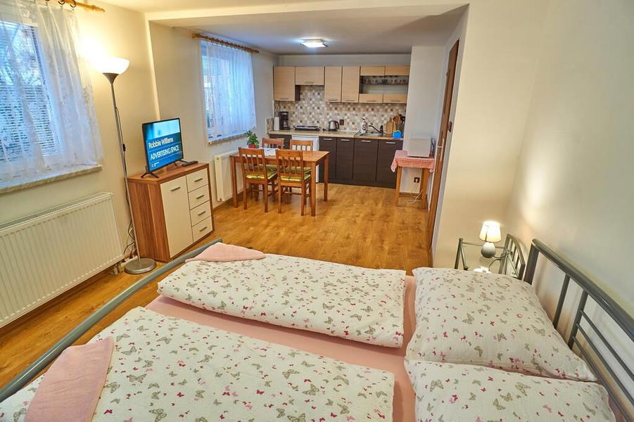 Penzion Mona se nachází uprostřed venkovské krajiny na úpatí Pradědu v pohoří Hrubý Jeseník. K dispozici jsou 2 dvoulůžkové pokoje, 1 čtyřlůžkový pokoj a 1 rodinný apartmán. V každém pokoji je vlastní WC. Apartmán má vlastní koupelnu a ostatní pokoje mají koupelna sdílenou. Pokoje využívají společnou kuchyňku, která je plně vybavená.V celé budově zdarma Wi-Fi .