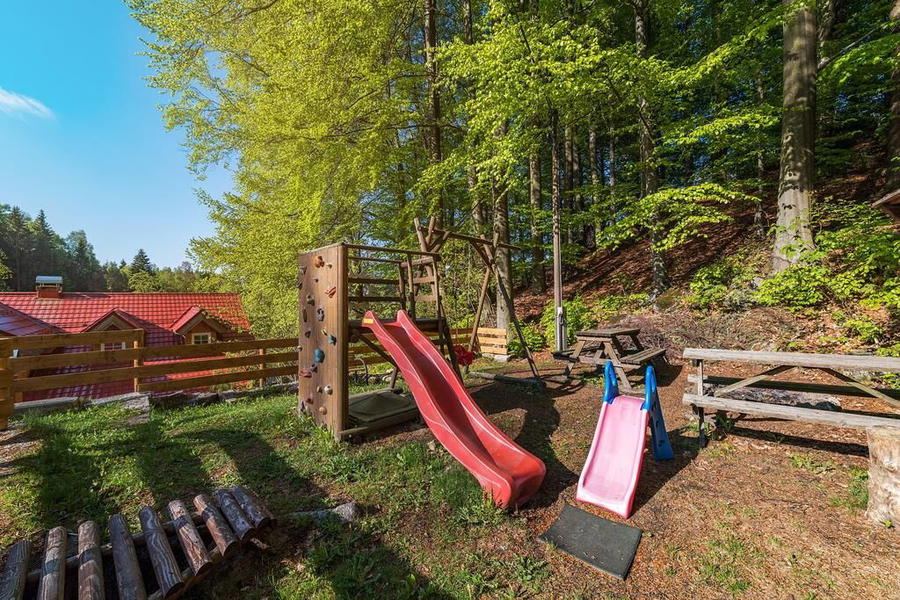 Pro nejmenší mají spoustu aktivit a vybavení. Uvnitř - dětský koutek s hračkami, odrážedlo, houpací koník, dětské knížky a stolní hry, židličky a stoleček na kreslení. Venku - dřevěný dětský hrad se skluzavkou, houpačkou, pískovištěm a lezeckou stěnou. Můžete si zapůjčit dřevěné dětské postýlky vč. peřinek a povlečení, dětské jídelní židličky, vaničky a nočníky. V zimě sáňky.