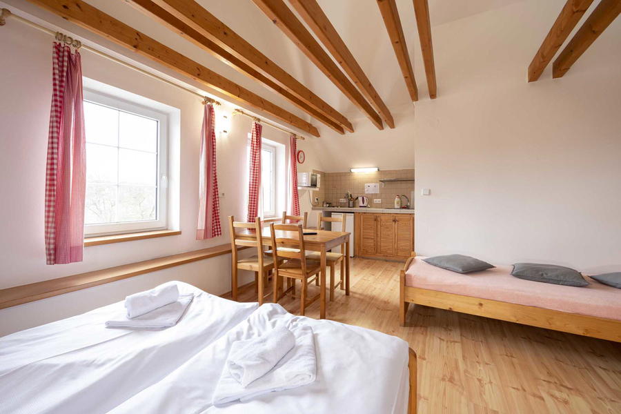Pouhých 7 km od hory Říp naleznete malebnou obec Vědomice a v ním stejnojmenný penzion. Čeká vás tady klidná dovolená v rodinné atmosféře. Maminky ocení kuchyňky, ve kterých budou moci chystat dobroty, kdykoli dostanou děti hlad. Tátové budou nadšeni z blízkých cyklostezek a ratolesti se vyřádí na zahradě nebo na dětském hřišti bistra U Sumce, které je hned naproti penzionu.