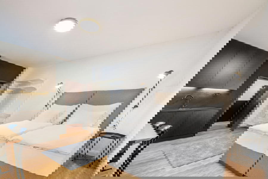 Že rodinná dovolená ve městě není to pravé? Zavítejte v Liberci do hotelu Pytloun Flat a rozhodně nebudete litovat. V mezonetovém apartmánu budou děti od rána do večera hrát na schovávanou v obou patrech a vy si zatím můžete v klidu otevřít rozečtenou knížku a u okna s krásným výhledem se do ní začíst.