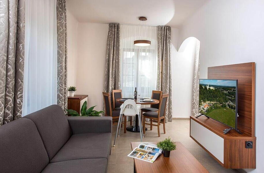 Přemýšlíte na rodinnou dovolenou s dětmi v jižních Čechách? Zarezervujte si pobyt v Residenci Hluboká, kde jsou perfektně připraveny na rodiny i s těmi nejmladšími dětmi. Pro ty vám rádi zapůjčí dětskou postýlku i jídelní židličku do apartmánu. Přímo v areálu ubytování mají také dětské hřiště, kde se vašim ratolestem bude zaručeně líbit. Při dovádění u her je můžete v klidu pozorovat z terasy, kde si zatím budete vychutnávat čerstvou kávu nebo sklen...