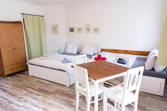 Škorničkův statek se nachází v Hamru v Jihočeském kraji. Ubytovat se můžete ve 4 apartmánu. Každý ma vybavenou kuchyňku. K zařízení patří také jídelní stůl a televize. Součástí každého apartmánu je koupelna se sprchovým koutem a toaletou.