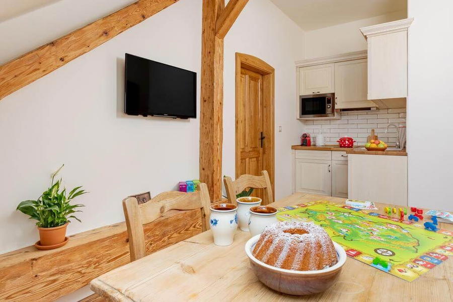 V samém srdci Šumavy v Nové Peci v Jihočeském kraji se ukrývá Statek U Medvěda, který nabízí ubytování v krásném prostředí vesnické chalupy. Pro děti tu mají množství stolních her k zapůjčení a zabaví se i venku na zahradě. Přímo za apartmány budete mít krásy šumavského národního parku a odpočinete si i vy i vaše děti.