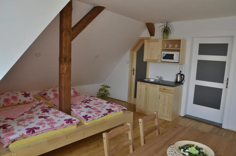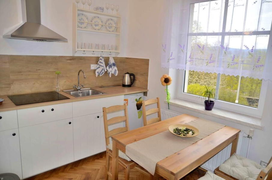 Vilu Kateřinu najdete ve Královéhradeckém kraji ve městě Broumov. Ubytování je v útulných apartmánech, které mají vlastní kuchyň a koupelnu se sprchou a WC. Rodinný apartmán nabízí jeden dvoulůžkový pokoj, jeden třílůžkový pokoj, plně vybavenou kuchyň, velkou jídelnu, vlastní koupelnu se sprchovým koutem a toaletou.