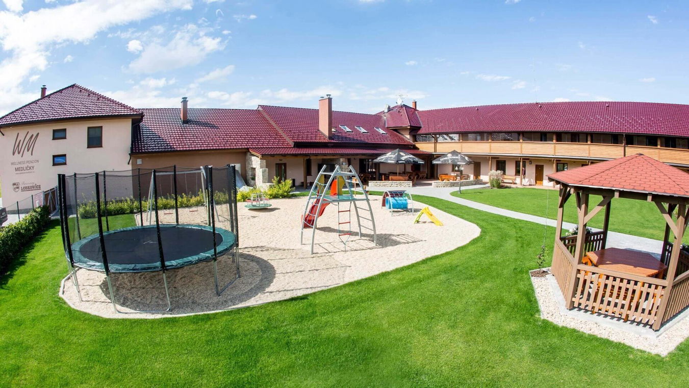 Wellness penzion Medličky nabízí ideální ubytování pro rodiny s dětmi u Batelova na Vysočině. Přímo v areálu penzionu je krásné dětské hřiště s prolézačkami, houpačkami i pískovištěm. Hřiště je umístěno tak, aby rodiče měli přímo z terasy restauraci výhled na své ratolesti a zároveň si mohli vychutnat svou odpolední kávu.